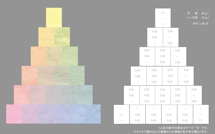 以下は、当サイトで販売している中温タイプの反応染料の三原色です。